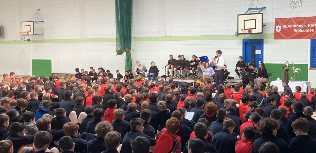 The boys assembled in the school hall today to celebrate the feast of St Anthony.